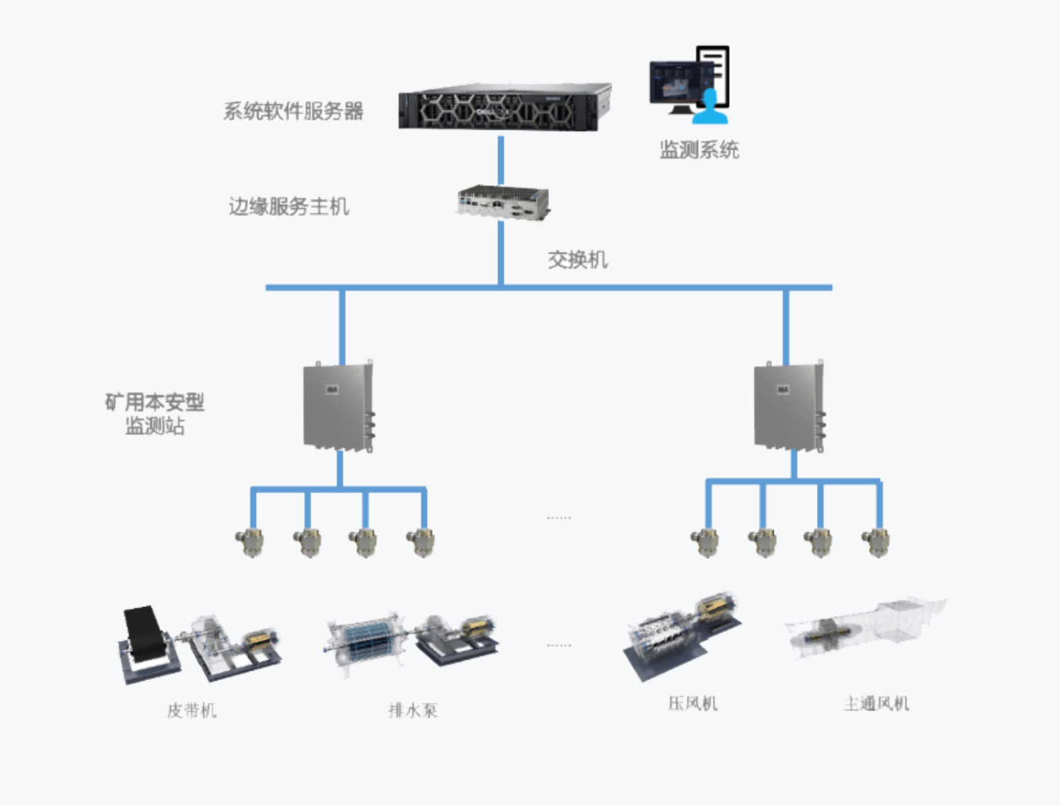 实现煤矿通风、排水、运输系统关键设备的在线监测,故障诊断和预测性维护。